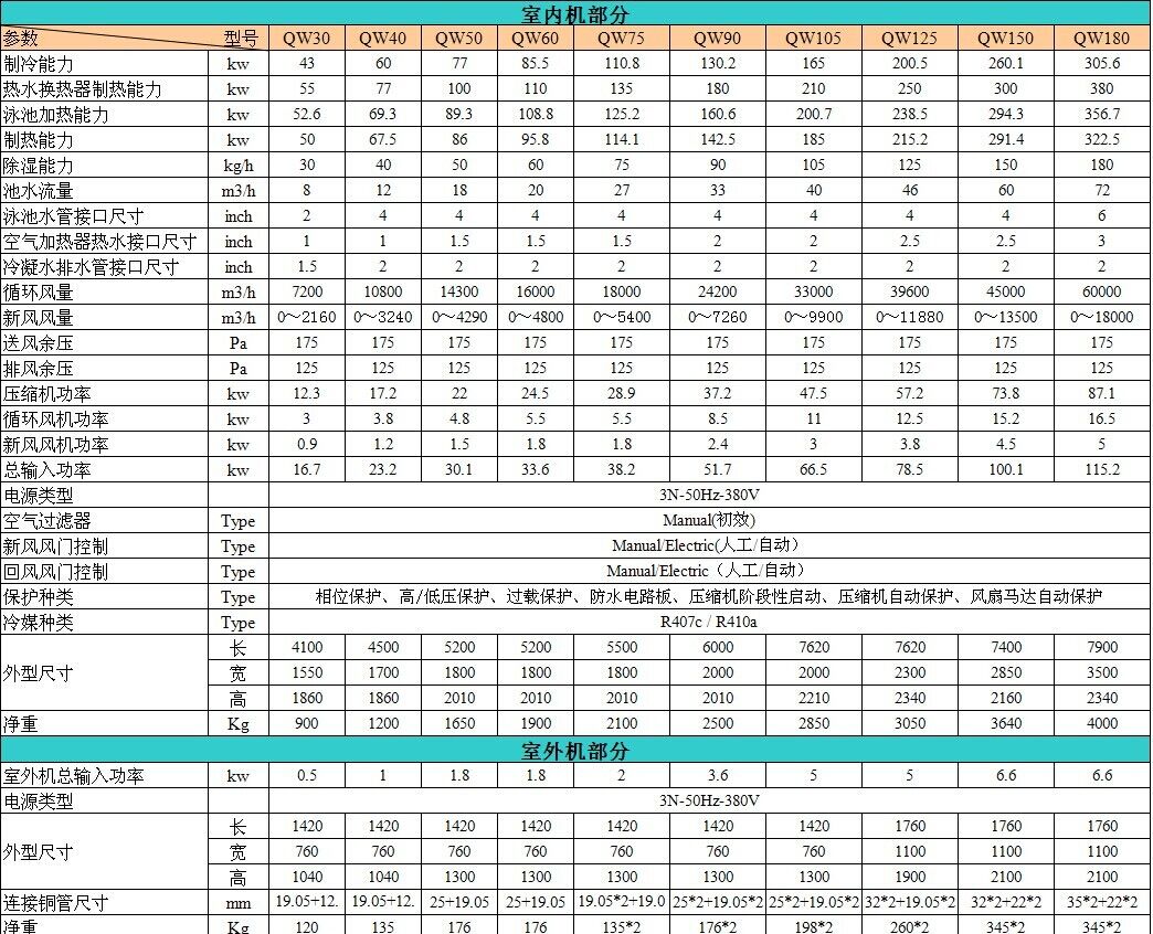 臥式熱泵性能參數(shù):