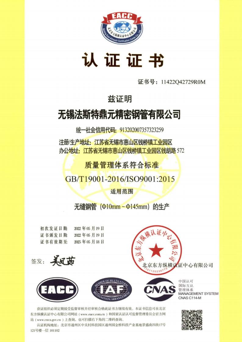 法斯特鼎元成立于2002年,占地面積約64000平方米。是一家主要從事精密鋼管的生產(chǎn)與經(jīng)營的獨(dú)資公司。公司基礎(chǔ)設(shè)施完善,加工工藝先進(jìn),檢測(cè)設(shè)備齊全??缮a(chǎn)外徑10-140mm,壁厚2-15mm的各種材質(zhì)、規(guī)格的冷拔和冷軋無縫鋼管,年產(chǎn)量達(dá)5萬噸。產(chǎn)品廣泛應(yīng)用于石油化工、鍋爐、汽車、機(jī)械、建筑、電力、船舶等各個(gè)領(lǐng)域。