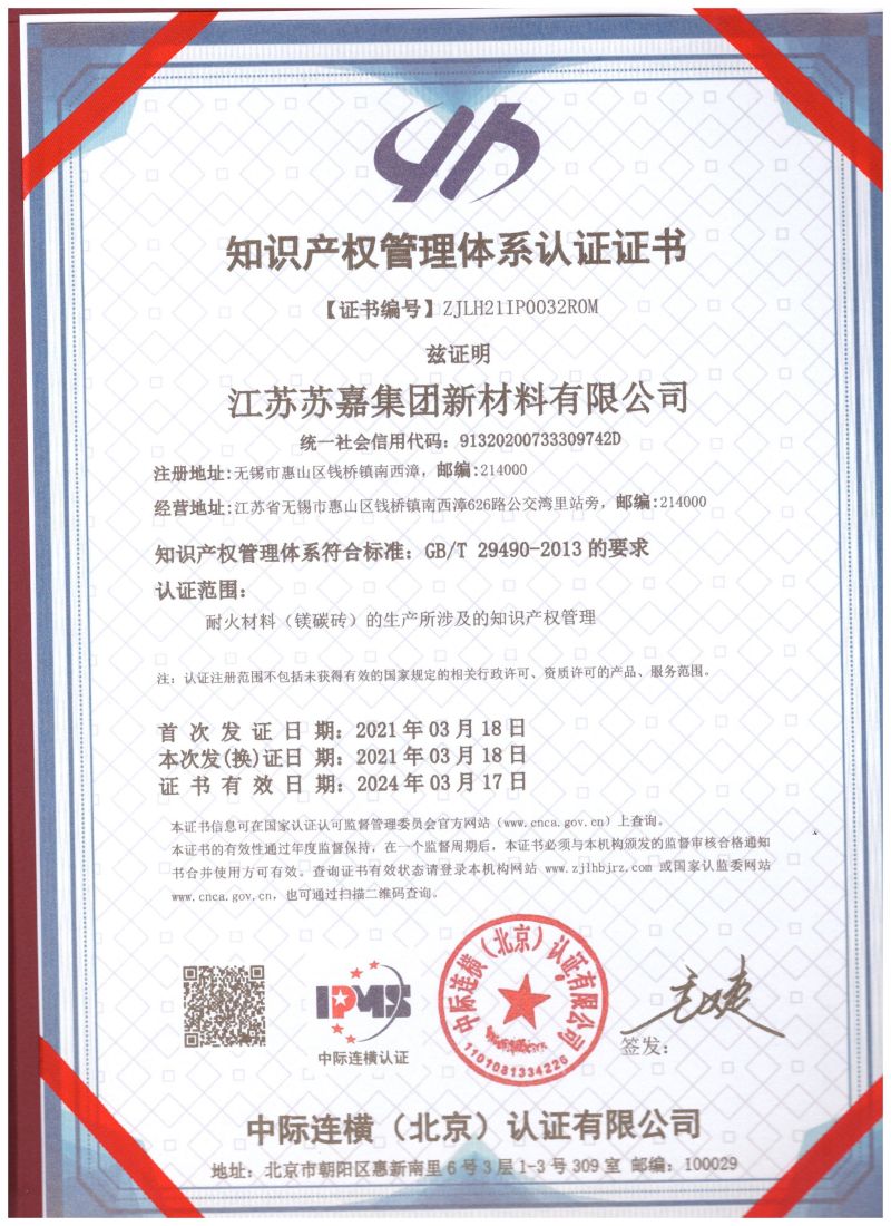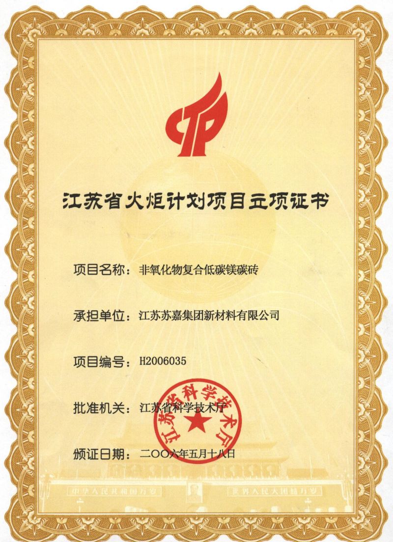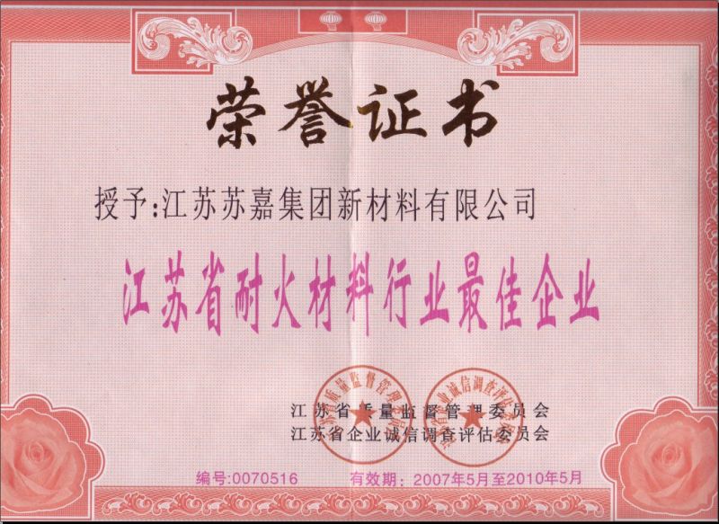 蘇嘉新材料公司是國家級高新技術(shù)企業(yè)、中國耐火材料協(xié)會(huì)副會(huì)長單位,公司擁有“江蘇省新型復(fù)合耐火材料工程技術(shù)研究中心”,“蘇嘉”商標(biāo)為江蘇省著名商標(biāo)、是江蘇省耐火材料第一品牌。公司多次被國內(nèi)重點(diǎn)鋼鐵企業(yè)評為“戰(zhàn)略合作優(yōu)秀供應(yīng)商”, 產(chǎn)品除了供應(yīng)國內(nèi)多家大型鋼鐵企業(yè)外,還遠(yuǎn)銷美國、德國、奧地利、新西蘭、日本及東南亞等國家和地區(qū)。