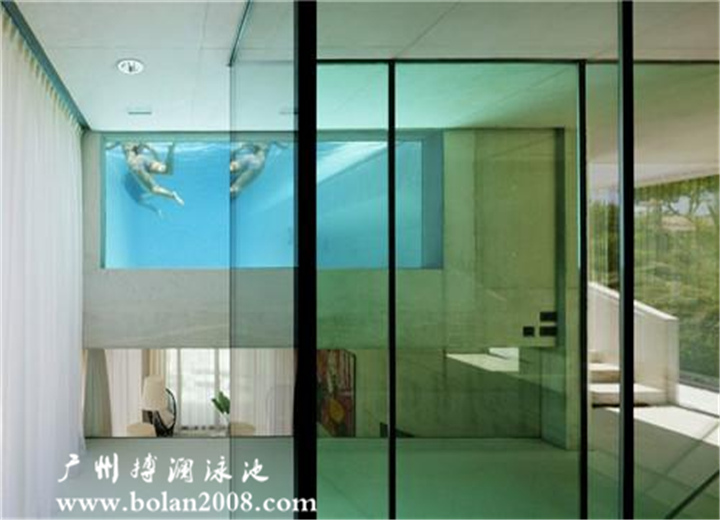 泳池一面朝向室內(nèi)的玻璃