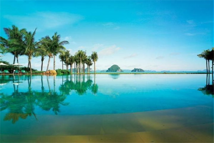就像普拉灣將麗思卡爾頓酒店的奢華體驗提升到了前所未有的高度,這家度假酒店的泳池也提高了視覺吸引力的標準。泳池的無邊設計模糊了池水和遠處藍得不真實的安達曼海的界線。泄漏真相的唯一線索是從攀牙灣海面上突出的橡皮軟糖一般的巖溶山。
