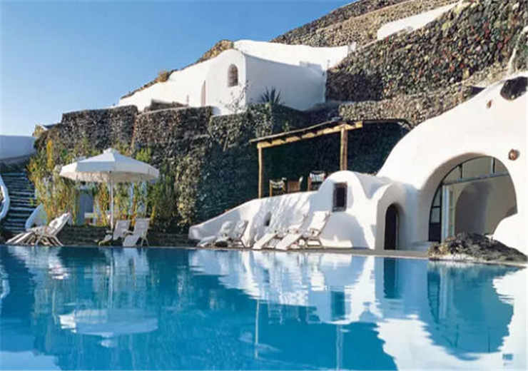 佩里沃拉斯坐落在島上著名的火山口的懸崖上,離圣托里尼島最美麗的村莊僅幾步之遙。房間從300多年以前的洞穴改造而來,干凈的白墻與色彩斑斕的床上用品交相輝映。這里沒有電視,絕對可以一天都不玩手機,因為這里有一個“絕對神奇的水池”。