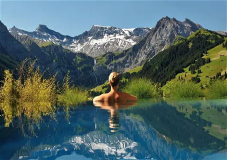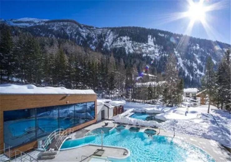 在瑞士海拔1300多米的酒店本身就是一個景點,環(huán)繞在雪山之中,冬天住在這里再舒適不過。你可以跳入熱氣騰騰的室外溫水泳池內(nèi)暢游。帶沖浪按摩的溫泉里一點都不冷,沖浪是自己控制一個最佳位置,舒服的享受著星空、雪山、波浪……