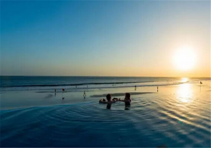 你以為你看到的是海,實際上它是酒店的泳池。勒吉安巴厘島酒店面朝大海,一天之內(nèi)不同的時間都映射出不一樣的景色,平靜的如同一面鏡子。